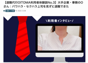 退職代行OITOMAでは「利用者体験談」のページが充実しており、客観的でリアルな口コミをしっかり公表しています。
